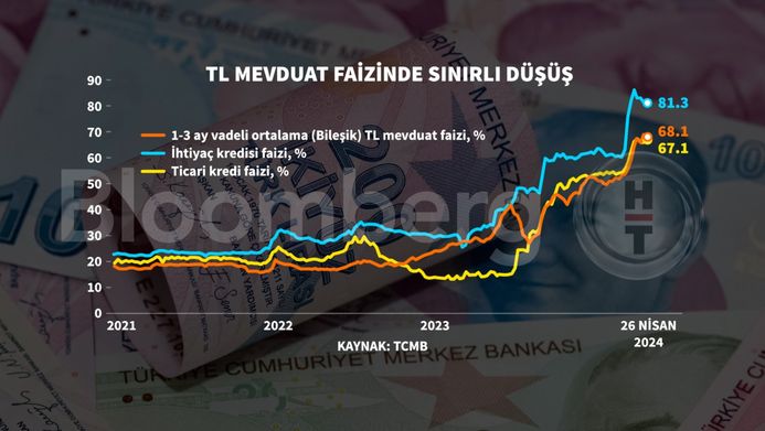 İki hafta önce yüzde 86,2’lik faizle tarihi zirvesini yenileyen tüketici faizi geçen hafta yüzde 81,3 olarak kaydedilirken ticari kredi faizi de yüzde 67,1 olarak kaydedildi.