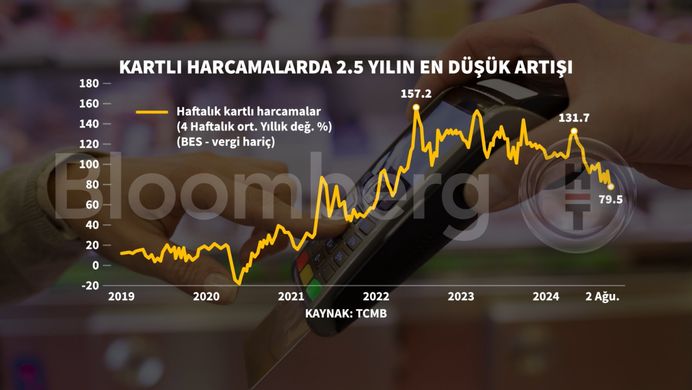Türkiye Cumhuriyet Merkez Bankası (TCMB) verilerine göre Mart ayı başında yüzde 135’lik artış yaşanan kartlı harcamalarda 2 Ağustos haftasında yüzde 79,5 ile 2,5 yılın en düşük artışı görüldü.